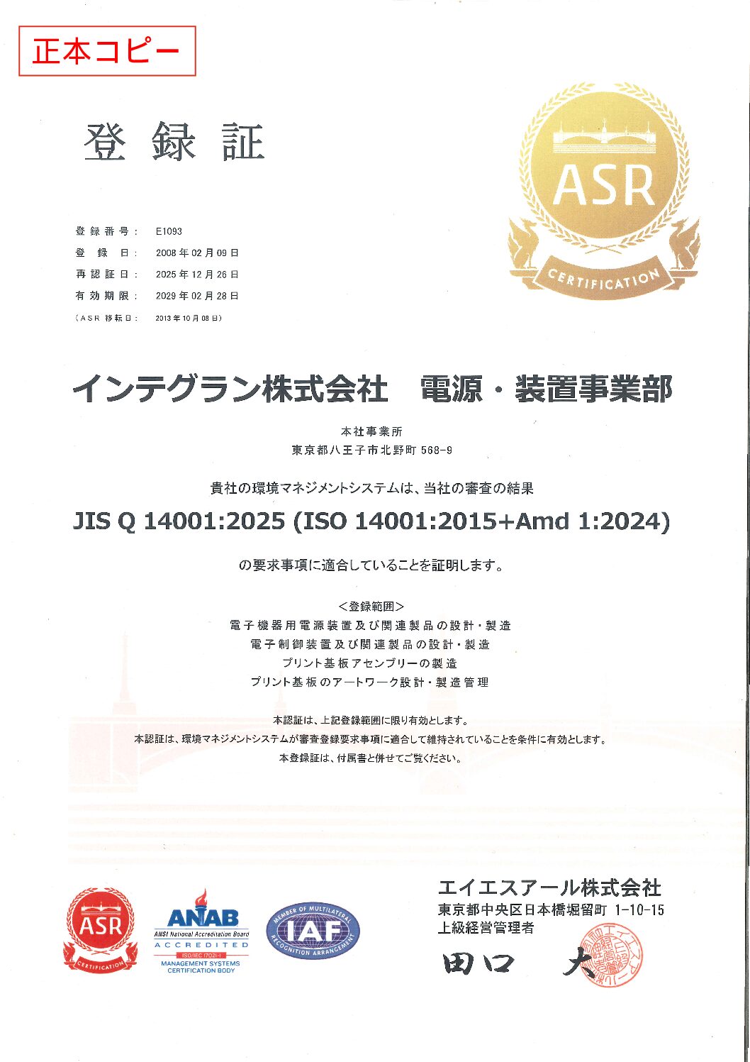 - 鉛フリー対応プリント基板実装、電源機器製造など、環境に与える影響を考慮した製品を提供します。
